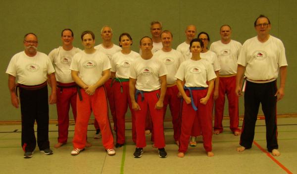 GM Roland stellte entsprechend den Fokus auf grundlegende Fauststoß- und Abwehrtechniken und die zugehörige Fußarbeit, um die Sportler nach der langen Abstinenz wieder an die zentralen Techniken des Mano Mano heranzuführen. Nach über vier schweißtreibenden Stunden lud GM Roland zum Ausklang alle Teilnehmer zu einem Umtrunk ein.
